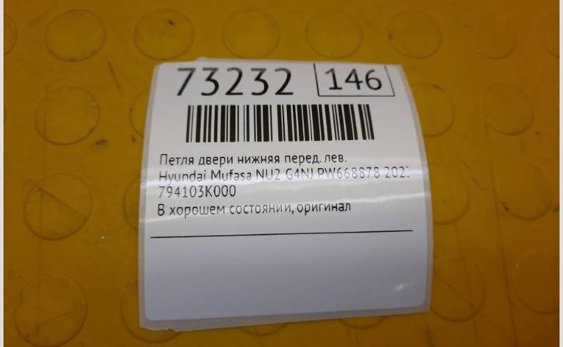 Петля двери нижняя Hyundai Mufasa 2023 794103K000 NU2 G4NJ PW668878, передняя левая