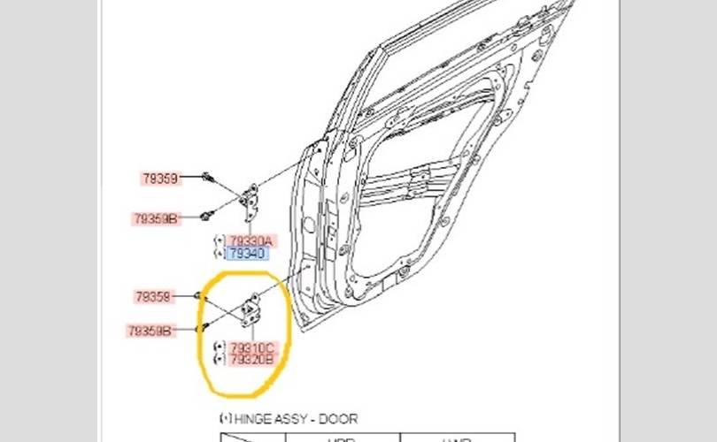 Петля двери нижняя Kia Sportage 2021 793202E000 QL G4NALH714830, задняя правая