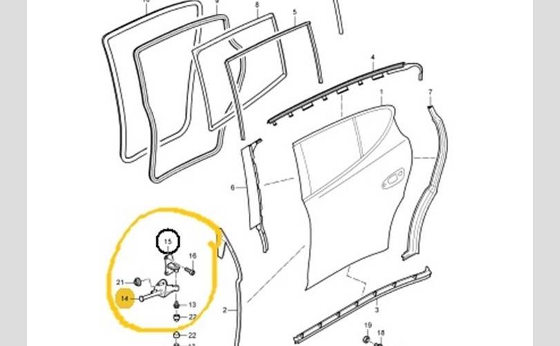 Петля двери верхняя PORSCHE Panamera 2014 97053162100 970 CWAA, задняя левая