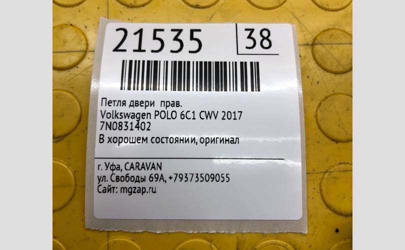 Петля двери Volkswagen POLO 2017 7N0831402 6C1 CWV289433, правая