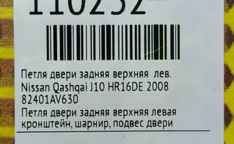 Петля двери задняя верхняя Nissan Qashqai 2008 82401AV630 J10 HR16DE, левая