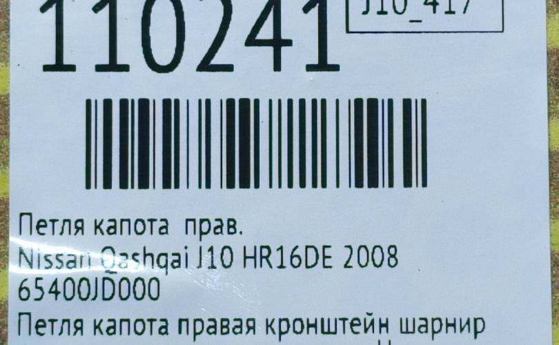 Петля капота Nissan Qashqai 2008 65400JD000 J10 HR16DE, правая