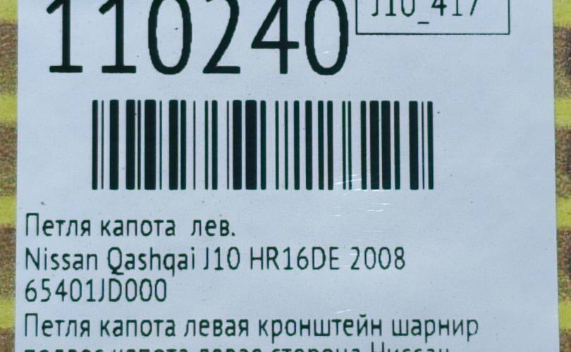 Петля капота Nissan Qashqai 2008 65401JD000 J10 HR16DE, левая
