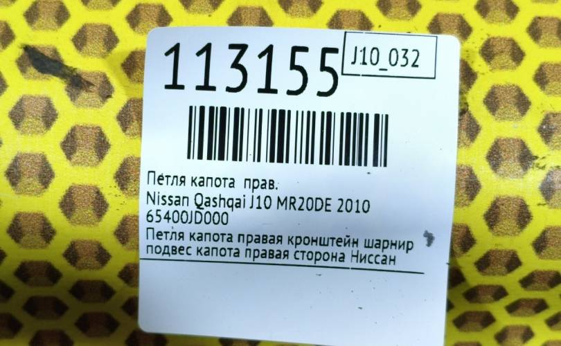 Петля капота Nissan Qashqai 2011 65400JD000 J10 MR20DE, правая