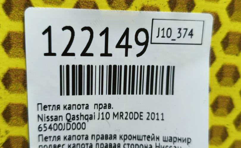Петля капота Nissan Qashqai 2011 65400JD000 J10 MR20DE, правая