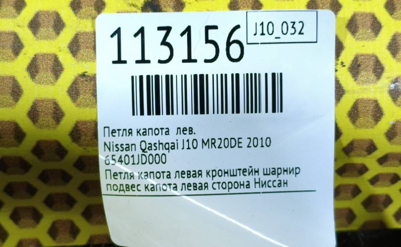 Петля капота Nissan Qashqai 2011 65401JD000 J10 MR20DE, левая