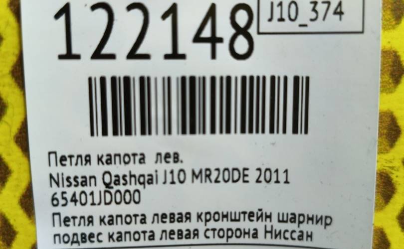 Петля капота Nissan Qashqai 2011 65401JD000 J10 MR20DE, левая