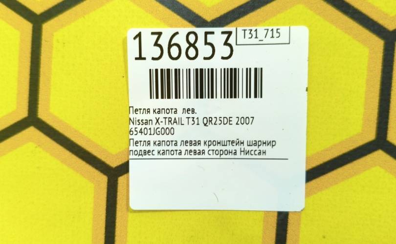 Петля капота Nissan X-TRAIL 2007 65401JG000 T31 QR25DE, левая