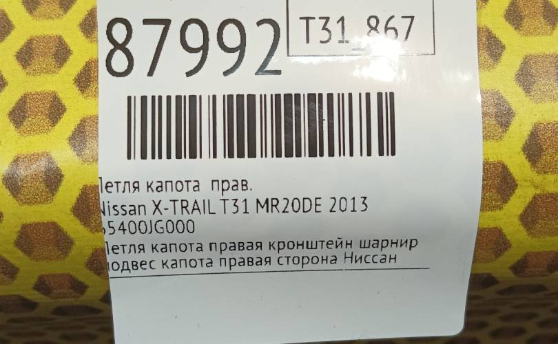 Петля капота Nissan X-TRAIL 2013 65400JG000 T31 MR20DE, правая