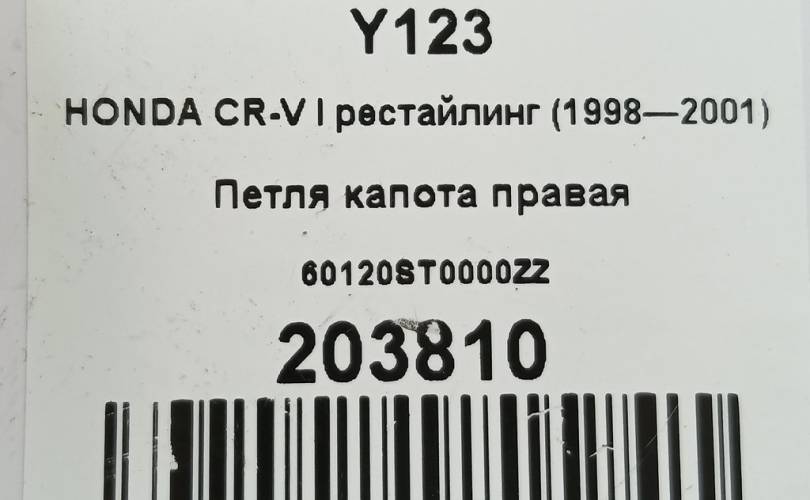 Петля капота правая на HONDA CR-V I рестайлинг (1998—2001) 60120ST0000ZZ