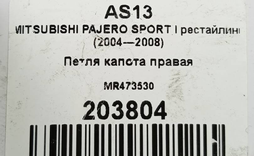 Петля капота правая на MITSUBISHI PAJERO SPORT I рестайлинг (2004—2008) MR473530