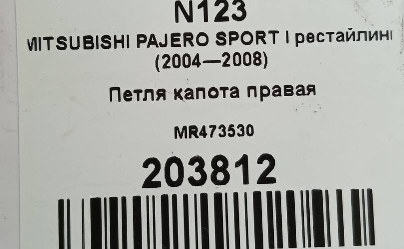 Петля капота правая на MITSUBISHI PAJERO SPORT I рестайлинг (2004—2008) MR473530