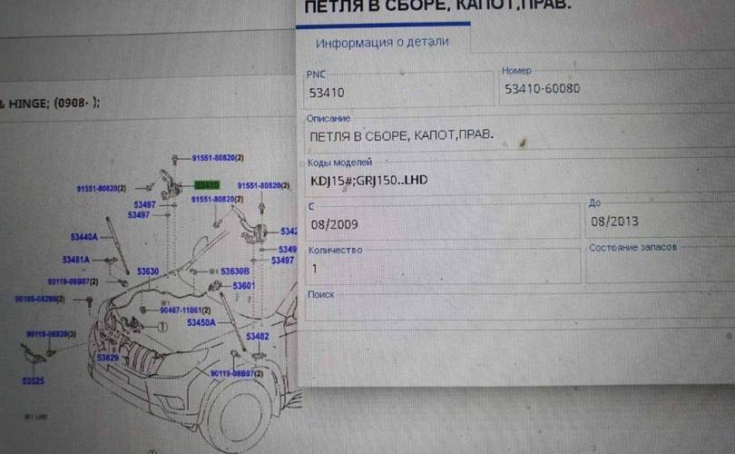 Петля капота правая Toyota Land Cruiser Prado 150 (2009—2013) 3.0