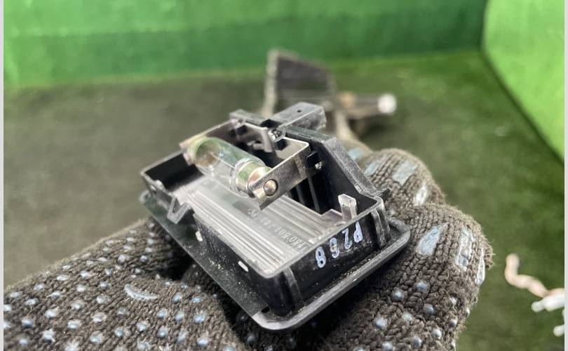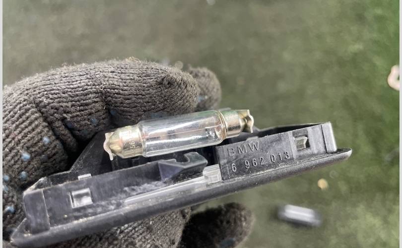 Е87 Черный плафон подсветки косметического зеркала в козырьке. Фонарь подсветки косметического зеркала. С черного салона. В сборе с лампой накаливания. Без дефектов и потертостей.