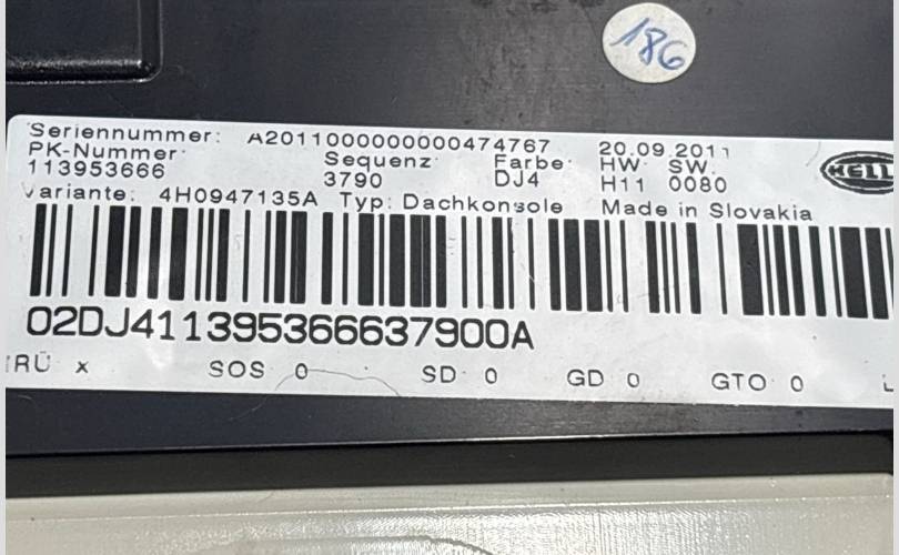 Плафон салона Audi A8 2011 4H0947135A D4 4.2 CDR
