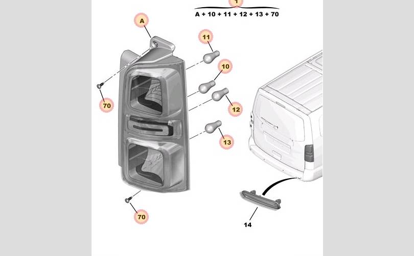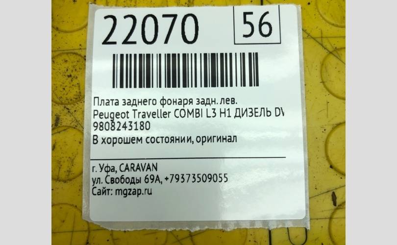 Плата заднего фонаря Peugeot Traveller 2021 9808243180 COMBI L3 H1 ДИЗЕЛЬ DW10FD FAP 110 КВТ, задняя левая