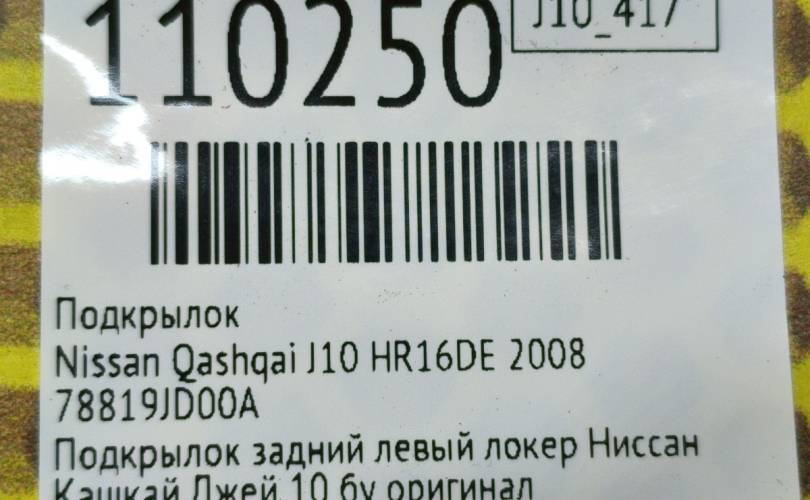 Подкрылок Nissan Qashqai 2008 78819JD00A J10 HR16DE