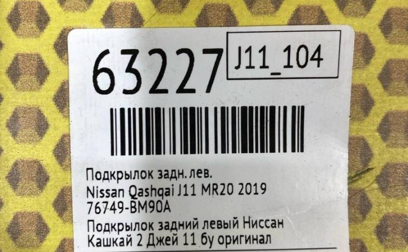 Подкрылок Nissan Qashqai 2019 76749BM90A J11 MR20, задний левый