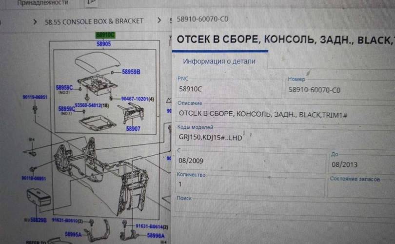 Консоль С ПОДЛОКОТНИКОМ TOYOTA LAND CRUISER (150) 2009- 5891060070C0 58910-60070-C0 5891060070 58910-60070