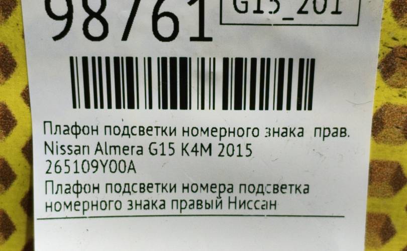 Подсветка номера Nissan Almera 2015 265109Y00A G15 K4M, правая