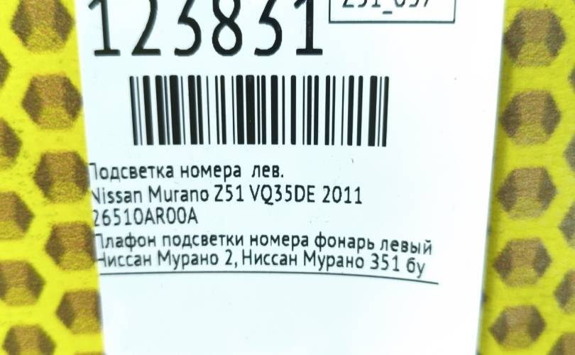 Подсветка номера Nissan Murano 2011 26510AR00A Z51 VQ35DE, левая