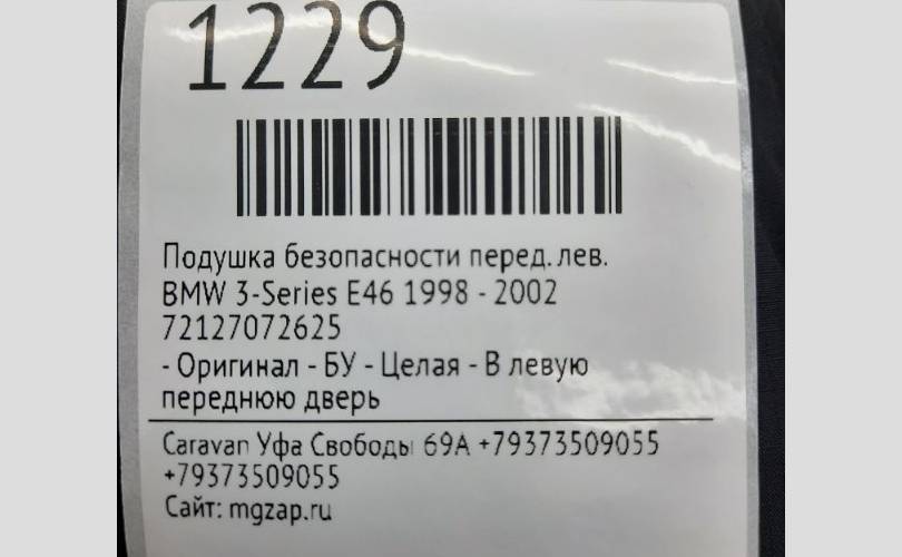Подушка безопасности Bmw 3-Series 1998 - 2002 72127072625 E46, передняя левая