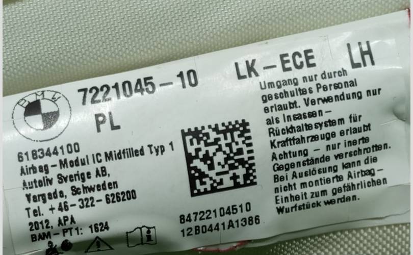 Подушка безопасности боковая (шторка) Bmw 1-Series 7212722104510 F20 N13B16A, левая