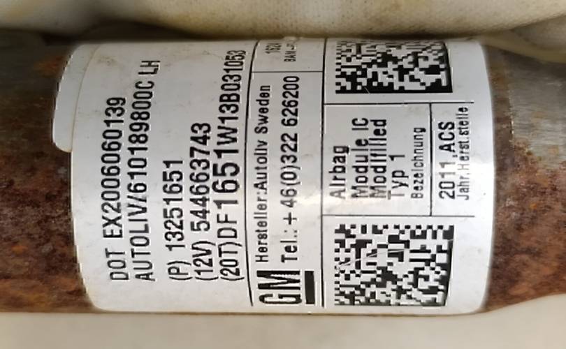 Подушка безопасности боковая (шторка) Chevrolet Cruze 2009-2016Артикул: 13251651