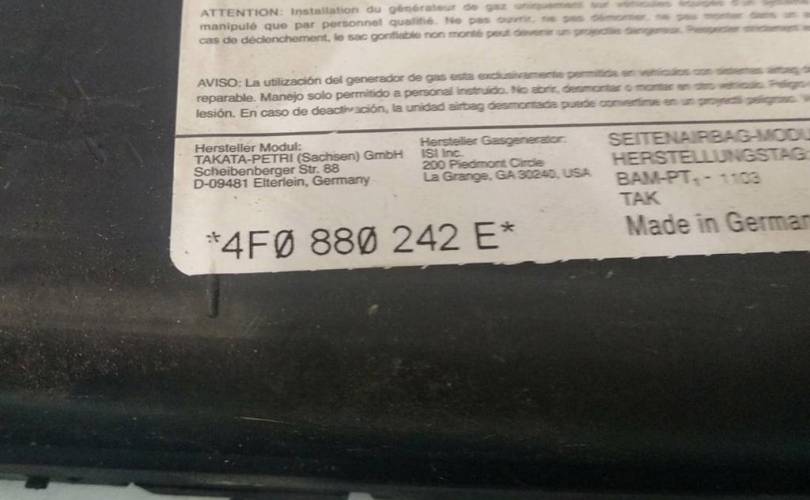 4F0 880 242 E / 4F0880242EПодушка безопасности боковая в сидение правая Audi A6 / C6 4F (2004-2011)