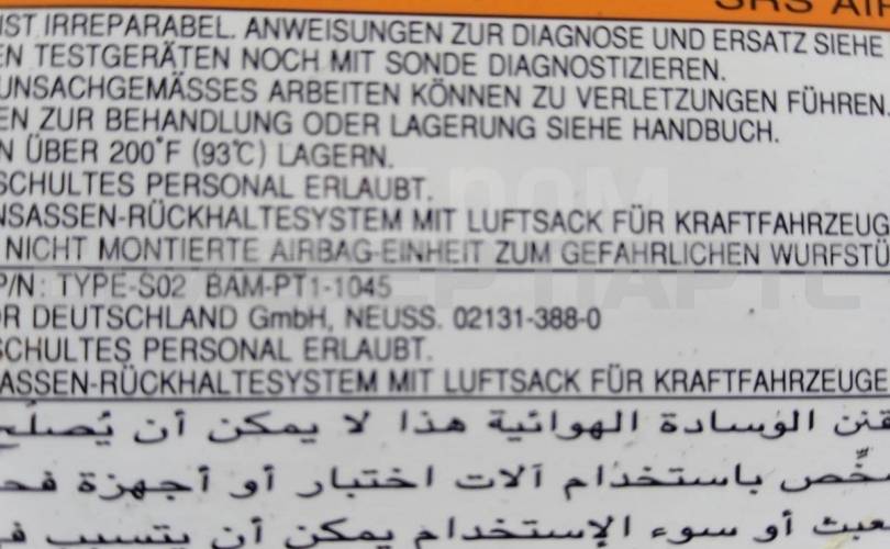 1) Наименование детали: Подушка безопасности Ниссан Максима 5 поколение A33