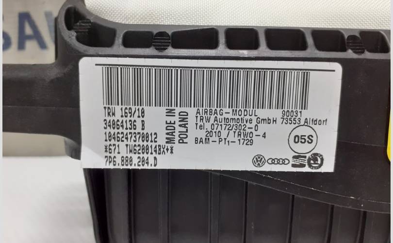 Подушка безопасности пассажира airbag Volkswagen Touareg NF 7P6880204 D, подушка в торпедо Touareg NF II 27P6 880 204 D, 7P6880204, 7P6 880 204 E, 7P6880204E, Модуль подушки безопасности переднего пассажира7P6880204D