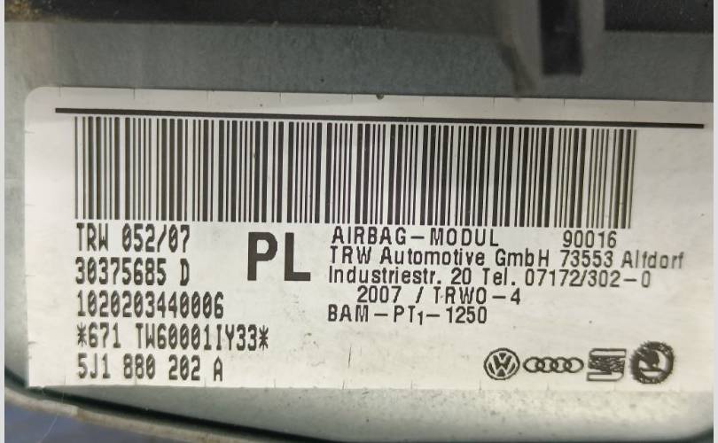 Подушка безопасности пассажира Skoda Roomster 2007 5J1880202B 1 1.6 BTS