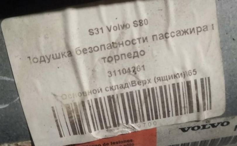 31104261 /Подушка безопасности пассажирская (в торпедо) Volvo S80 1998-2006 вольво с80