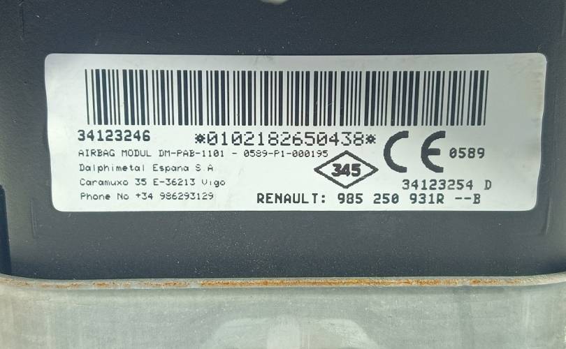 Подушка безопасности пассажирская (в торпедо) Renault Sandero 2014-