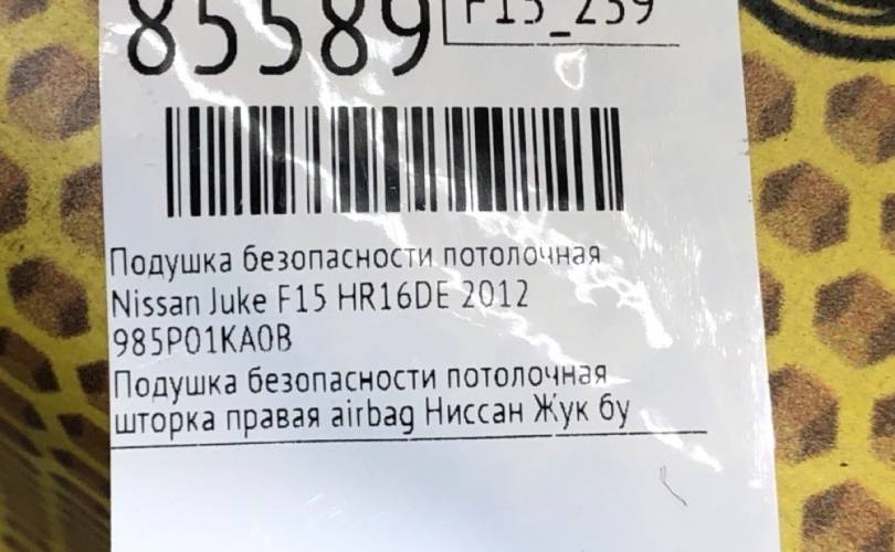 Подушка безопасности потолочная Nissan Juke 2012 985P01KA0B F15 MR16DDT