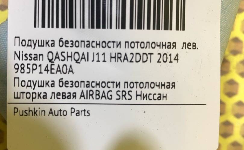 Подушка безопасности потолочная Nissan QASHQAI 2014 985P14EA0A J11 HRA2DDT, левая