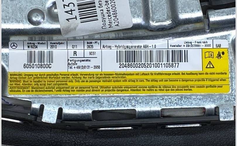 Подушка безопасности правого сиденья Mercedes-benz 2010 W204