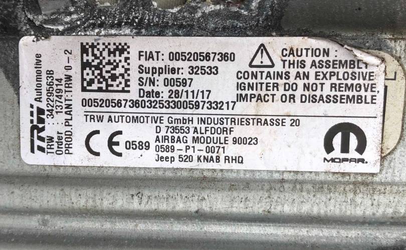 Подушка безопасности водительская нижняя (для колен) Jeep Renegade 2015-2023 68346445AA ; 1374914 ; 00520567360 в наличии на складе.Просьба учитывать, что товар не разбирается для фотографии, цена указана за конкретную деталь!