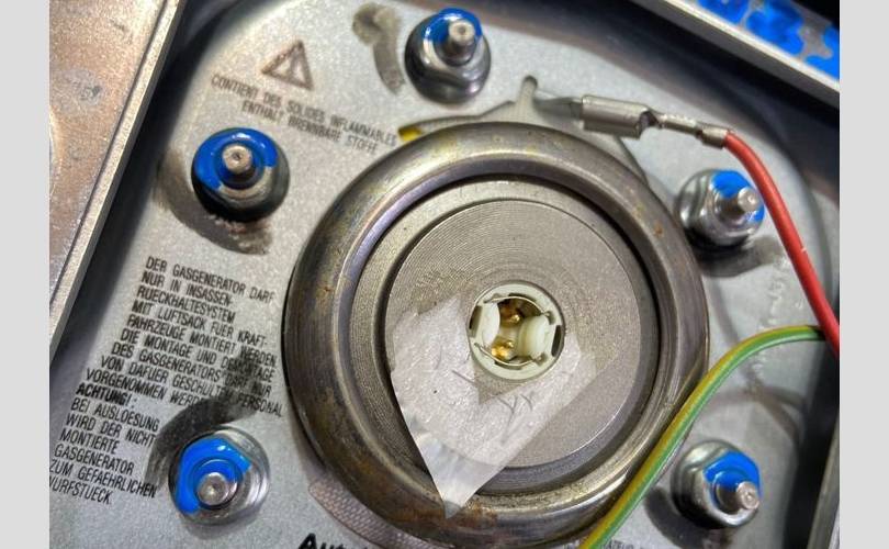 Подушка безопасности в руль.Разбор Пежо-607 2001 год (Peugeot-607 2001 г.) двс EW12 2.2 л. 158 л. с., акпп 20HZ16, передний привод, кузов легковой седан, цвет темно-синий, левый руль.