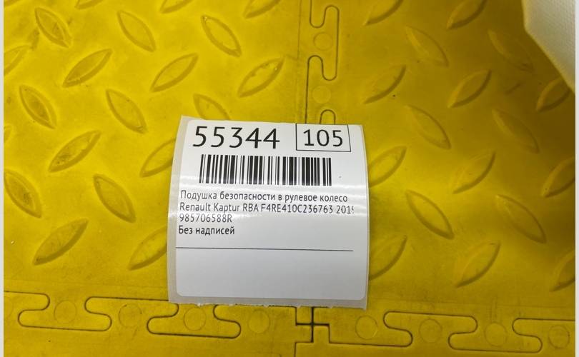 Подушка безопасности в рулевое колесо Renault Kaptur 2019 985706588R RBA F4RE410C236763