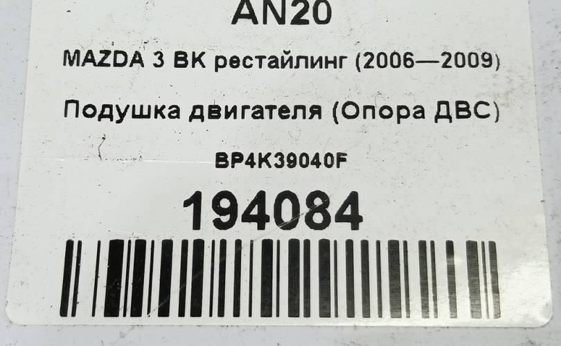 Подушка двигателя (Опора ДВС) на MAZDA 3 BK рестайлинг (2006—2009) BP4K39040F