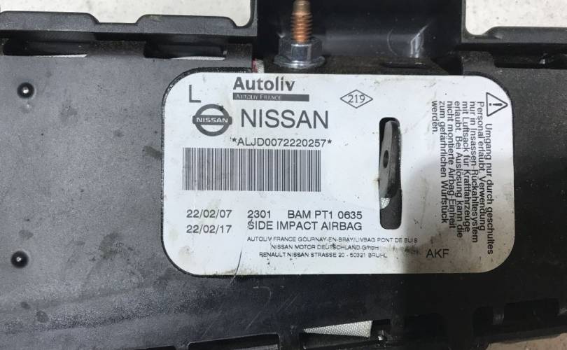 Наименование: Подушка безопасности в сиденье Ниссан Кашкай Ж 10, Ниссан Патфаиндер Р51 , Ниссан Навара Д40