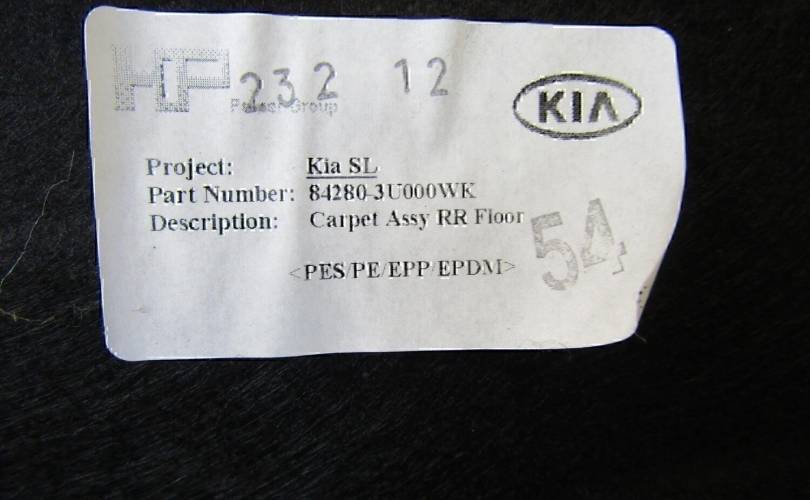 Покрытие напольное (ковролин) Hyundai-KIA Sportage 2010-2015Артикул: 842803U000WK