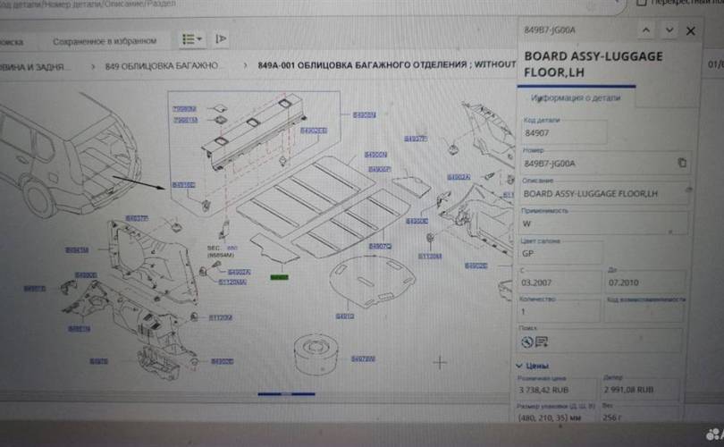 Пол багажника левая часть nissan X-trail (T31) (20