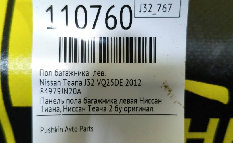 Пол багажника Nissan Teana 2012 84979JN20A J32 VQ25DE, левый