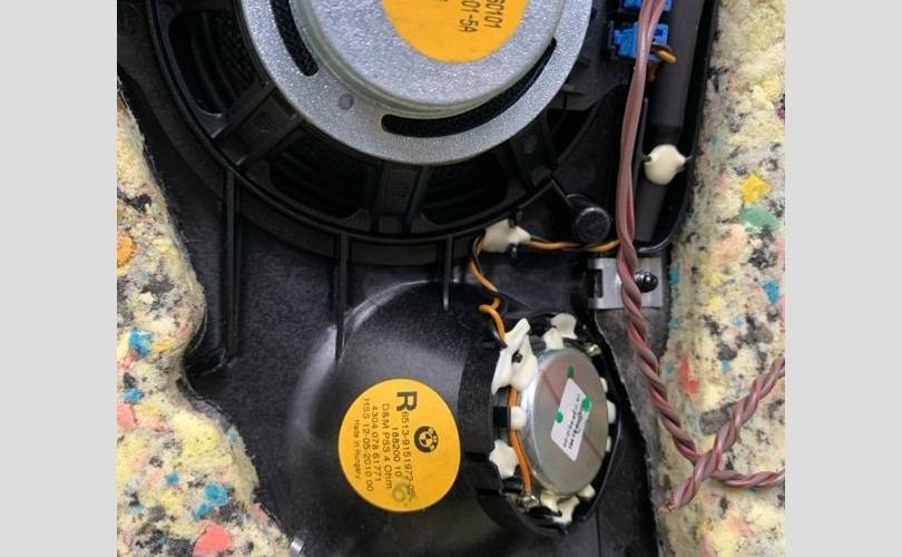 В сборе шторка багажника и динамики.