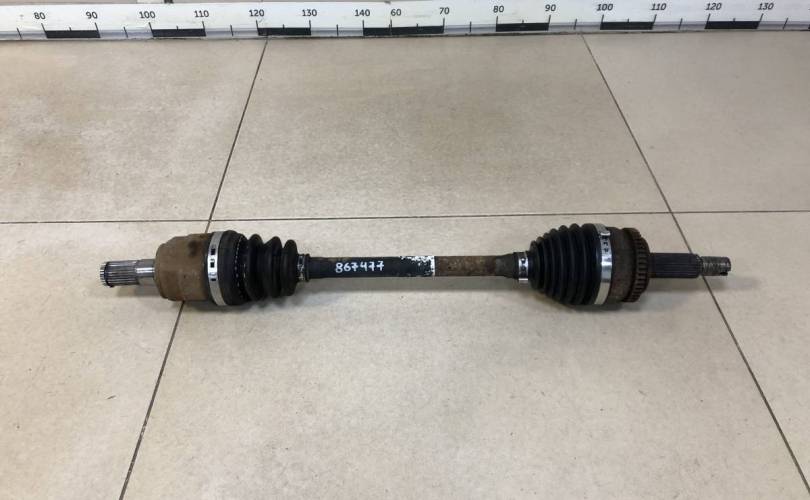 Оригинал. Количество шлицов наружного шруса 27. Количество шлицов внутреннего шруса 27. Трещины на пыльнике внутреннего шруса. Деталь демонтирована с автомобиля Hyundai i30 GD. Год выпуска 2014. Цвет кузова Белый. Код цвета TCW. Привод Передний. Трансмиссия Автомат. Тип кузова Универсал. Модель двигателя G4FG объемом 1.6 литра. Руль Левый.