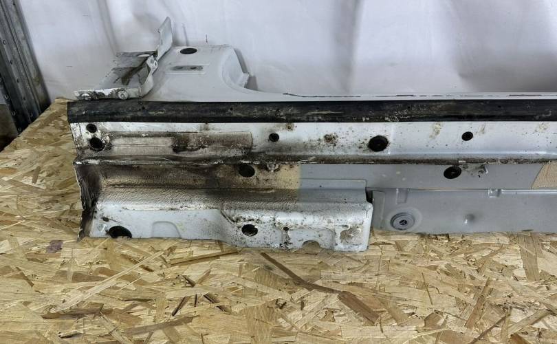 Б.у. оригинальный порог левый с заходом на переднюю стойку и заходом на арку заднего колеса.