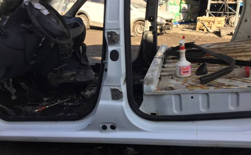 Линию отреза уточнить у менеджера. Деталь демонтирована с автомобиля Lada Largus, 2014 года выпуска, Код цвета Белый Ледниковый, с двигателем 1.6л бензин K7M и механической кпп. Сколы лкп.