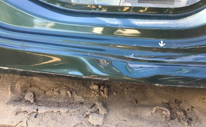 линию отреза уточнять у менеджера. Вмятина